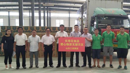 8月27日,運送捐贈物資的三星人兵分兩路,從鄒平總部出發(fā),奔赴壽光、青州兩處重災區,將捐贈物資600箱長(cháng)壽花金胚玉米油、200箱長(cháng)壽花醬油,于當天上午分別運抵壽光市、青州市慈善總會(huì )的救災物資指定接收點(diǎn),順利交給兩市接收單位。