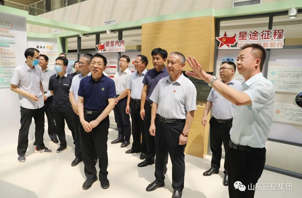 7月1日,省民營(yíng)企業(yè)高質(zhì)量發(fā)展服務(wù)隊全體隊員來(lái)山東三星集團玉米產(chǎn)業(yè)黨建示范點(diǎn)參觀(guān)并開(kāi)展贈書(shū)送學(xué)活動(dòng),鄒平市委組織部副部長(cháng)王凱,韓店鎮黨委副書(shū)記、鎮長(cháng)邢錦凱,山東三星集團黨總支書(shū)記、董事長(cháng)王明峰、副總經(jīng)理孫喜、任在順陪同活動(dòng)。