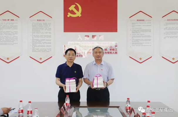 黨建示范點(diǎn)參觀(guān)結束,在隨后舉行的座談及贈書(shū)送學(xué)活動(dòng)中,省民營(yíng)企業(yè)高質(zhì)量發(fā)展服務(wù)隊濱州二隊隊長(cháng)、省委辦公廳二級巡視員崔本明詳細了解了企業(yè)黨建工作基本情況、特色優(yōu)勢以及亮點(diǎn)工作開(kāi)展情況,對山東三星集團各項黨建工作給予了充分肯定,要求企業(yè)繼續堅持一手抓生產(chǎn)經(jīng)營(yíng)、一手抓企業(yè)黨建,真正把黨建工作融入生產(chǎn)工作崗位、員工思想行動(dòng)和生產(chǎn)經(jīng)營(yíng)管理過(guò)程中,實(shí)現黨建工作與企業(yè)發(fā)展的共建共贏(yíng)。