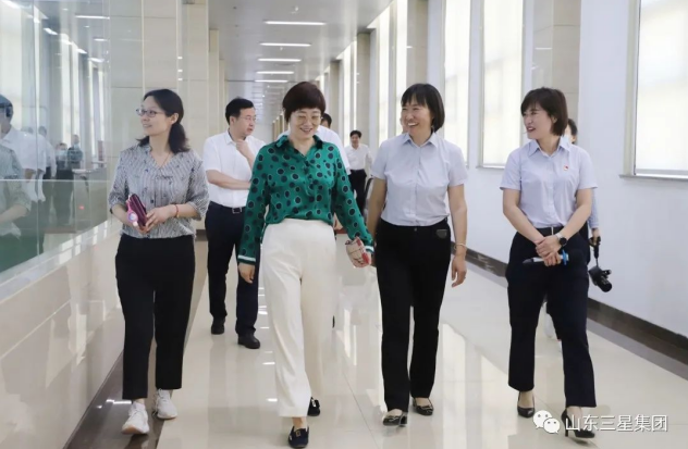5月25日,中國糧油學(xué)會(huì )副秘書(shū)長(cháng)于衍霞一行在濱州市糧食和物資儲備局黨組成員、副局長(cháng)藺兵川,鄒平市領(lǐng)導孫東平陪同下來(lái)山東三星集團參觀(guān)調研。山東三星集團副總經(jīng)理孫喜、技術(shù)總監王月華接待了調研團一行。