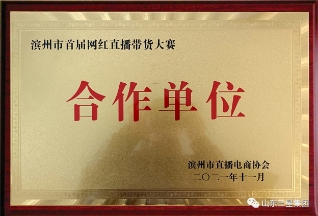 近日,“促進(jìn)電商發(fā)展 助力鄉村振興”濱州市首屆網(wǎng)紅直播帶貨大賽暨濱州市身殘志堅達人直播大賽頒獎典禮隆重舉行。山東三星集團電商運營(yíng)中心直播團隊憑借出眾的帶貨能力和業(yè)界影響力榮獲三等獎,并代表企業(yè)接牌特約“合作單位”榮譽(yù)獎牌。