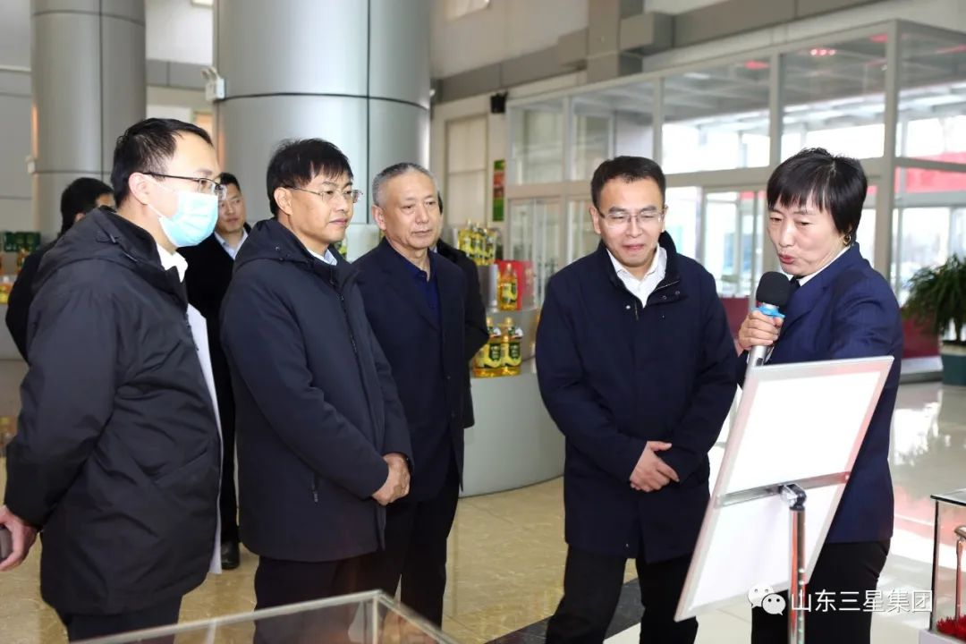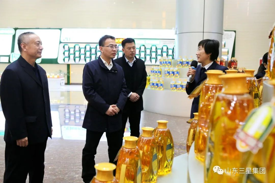 王明峰對李群一行的到來(lái)表示歡迎,并分享了企業(yè)在推進(jìn)玉米精深加工、延展高端糧油產(chǎn)業(yè)鏈條等領(lǐng)域的實(shí)踐經(jīng)驗和探索成果,就企業(yè)來(lái)年高端糧油產(chǎn)業(yè)發(fā)展規劃和戰略布局作詳細介紹。他表示,多年來(lái),在各級黨委政府關(guān)心和支持下,山東三星集團搶抓機遇、主動(dòng)作為,時(shí)刻不忘農業(yè)產(chǎn)業(yè)化龍頭企業(yè)責任擔當,在高端糧油產(chǎn)業(yè)化創(chuàng )新、規范化生產(chǎn)、專(zhuān)業(yè)化運營(yíng)等領(lǐng)域持續發(fā)力。自主創(chuàng )新研發(fā)了長(cháng)壽花濃香玉米油、長(cháng)壽花零反式脂肪高養玉米油等一系列新型高端食用油產(chǎn)品,上市箸下“本釀造”系列調味品,著(zhù)力豐富國民餐桌,健康國民生活;加速構建玉米油全產(chǎn)業(yè)鏈布局,全力提升農業(yè)綜合生產(chǎn)能力,助力推動(dòng)農業(yè)增效農民增收;并深度參與“齊魯糧油”公眾品牌建設,強力拓展新型品牌營(yíng)銷(xiāo)推廣渠道,致力打造核心競爭力更強、農業(yè)產(chǎn)業(yè)化帶動(dòng)效益更明顯的優(yōu)質(zhì)民族糧油品牌。王明峰還提到,新的一年,山東三星集團將立足自身稟賦優(yōu)勢,強化優(yōu)質(zhì)渠道拓展及品牌價(jià)值提升,在深度融入新發(fā)展格局過(guò)程中展現新作為,為建設現代化富強文明新鄒平,促進(jìn)農村經(jīng)濟高質(zhì)量發(fā)展貢獻新力量。