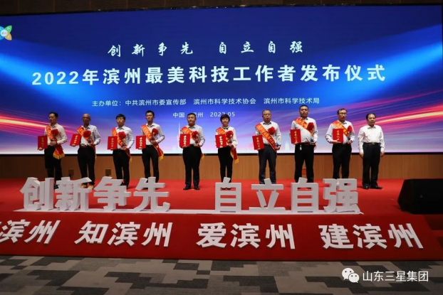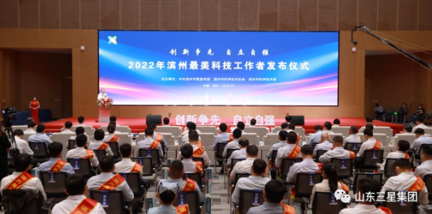 發(fā)布儀式上,秦維強、宋永祥分別為“濱州市金獅獎企業(yè)最美科技工作者”頒獎。山東三星集團旗下裕航合金公司副總經(jīng)理房濤榮獲濱州市金獅獎企業(yè)最美科技工作者榮譽(yù)稱(chēng)號。
