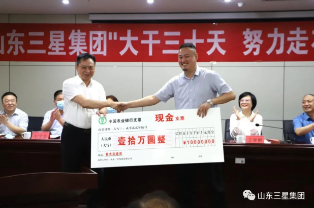 會(huì )議首先宣讀了《山東三星集團“大干三十天 努力走在前”活動(dòng)實(shí)施方案》,活動(dòng)面向全體干部員工設置經(jīng)營(yíng)目標獎、優(yōu)秀管理獎、最美一線(xiàn)職工獎,明確獎勵標準辦法,要求各生產(chǎn)經(jīng)營(yíng)單位高度重視,開(kāi)足馬力挖潛增效,全力沖刺年中經(jīng)營(yíng)目標,爭創(chuàng )最佳運營(yíng)業(yè)績(jì)。