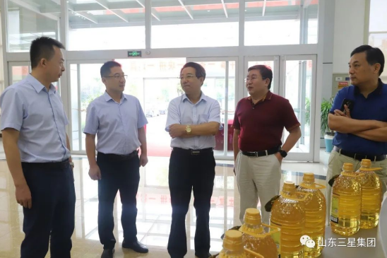 7月20日,山東省糧食行業(yè)協(xié)會(huì )副會(huì )長(cháng)宋安君、協(xié)會(huì )秘書(shū)長(cháng)徐興一行來(lái)山東三星集團調研。濱州市糧食和物資儲備局黨組成員、四級調研員楊立新,濱州市糧食行業(yè)協(xié)會(huì )會(huì )長(cháng)劉俊軍參加活動(dòng)。山東三星集團黨總支書(shū)記、老董事長(cháng)王明峰,集團綜合管理部總監韓延庭、規劃發(fā)展部總監陳劍飛接待調研領(lǐng)導。