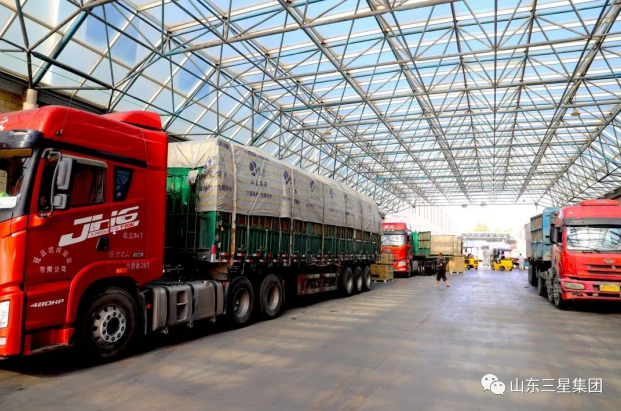 ▲來(lái)自各地的運輸車(chē)輛正等待裝車(chē),長(cháng)壽花全系列產(chǎn)品由此馳往全國市場(chǎng)。