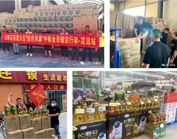 ▲深入市場(chǎng)一線(xiàn),長(cháng)壽花食品各銷(xiāo)售大區的中秋熱賣(mài)活動(dòng)全面鋪展、火熱進(jìn)行中。