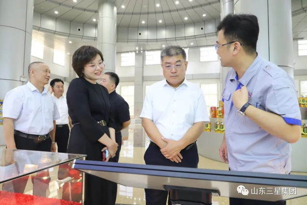9月22日,濱州市人民檢察院黨組書(shū)記、檢察長(cháng)王體功來(lái)山東三星集團調研,鄒平市人民檢察院黨組書(shū)記、檢察長(cháng)溫健,濱州市人民檢察院辦公室主任李玉平參加調研。山東三星集團黨總支書(shū)記王明峰,集團董事長(cháng)、總裁王亞群,長(cháng)壽花食品股份有限公司副總經(jīng)理張恒接待調研領(lǐng)導。