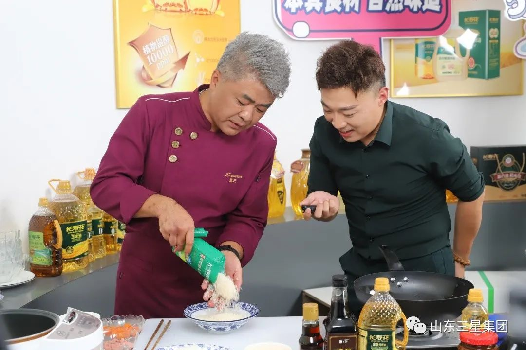 直播中,品牌主播賣(mài)力帶貨,輪番推出長(cháng)壽花明星糧油組合優(yōu)惠鏈接;國廚夏天以長(cháng)壽花金胚玉米油、箸下0添加醬香鮮醬油、長(cháng)壽花長(cháng)粒香大米等明星產(chǎn)品為料,現場(chǎng)烹飪數道精美飯食菜肴。更有長(cháng)壽花食品負責人直播互動(dòng),分享長(cháng)壽花食品成長(cháng)歷程和愿景追求,講述長(cháng)壽花健康廚房品牌文化,并頻頻破價(jià)誠意惠售,掀起一輪又一輪銷(xiāo)售熱潮。