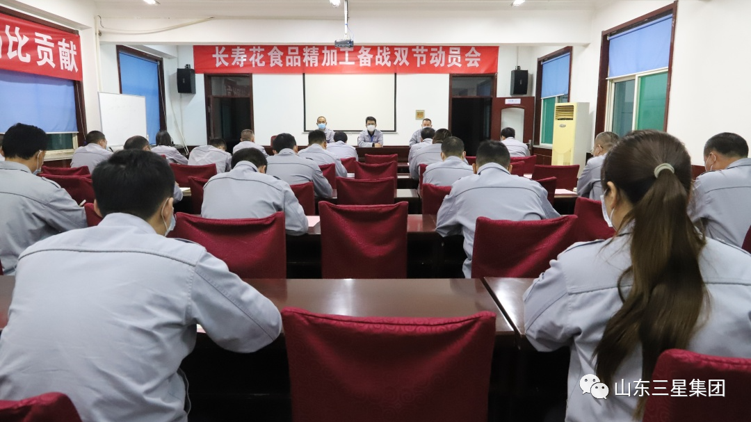 元旦春節雙節將近,為進(jìn)一步加大生產(chǎn)、提升效能,保質(zhì)保量完成全年任務(wù)目標,11月16日,長(cháng)壽花食品精加工事業(yè)部召開(kāi)備戰“雙節”動(dòng)員大會(huì )。山東三星集團企管部經(jīng)理程士警,長(cháng)壽花食品副總經(jīng)理張恒、生產(chǎn)總監霍光彬及公司生產(chǎn)、銷(xiāo)售、儲運、設備、安全部門(mén)負責人參加會(huì )議。