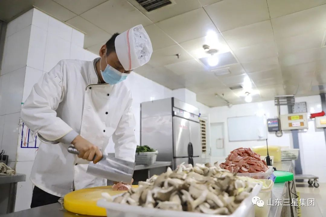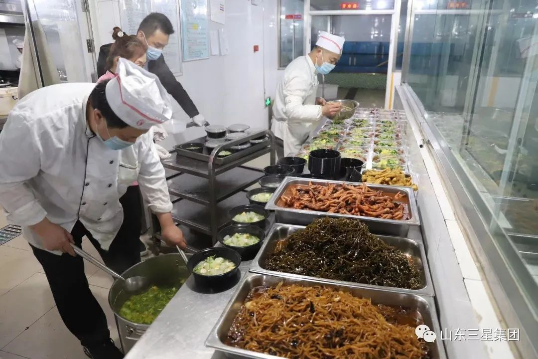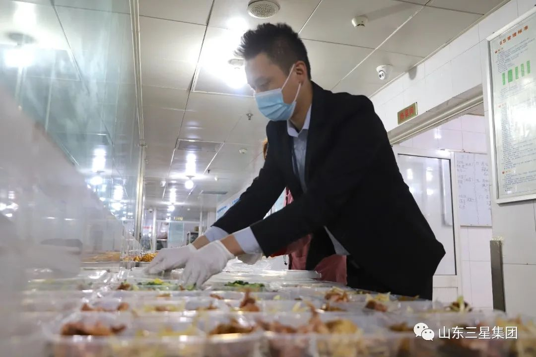 11月下旬,鄒平疫情散發(fā),山東三星集團總部150余名干部員工緊急趕赴公司,開(kāi)啟24小時(shí)駐廠(chǎng)模式。此時(shí)此刻,穩產(chǎn)保供是重中之重,保障駐廠(chǎng)人員的三餐供應也是首要任務(wù)。趙龍帶領(lǐng)團隊快速盤(pán)點(diǎn)儲存食材,聯(lián)絡(luò )供貨渠道,做好細致分工責任落實(shí)……一切工作按部就班開(kāi)展起來(lái),150名干部員工也過(guò)上了“早餐蛋奶充足 午晚餐葷素管夠”的駐廠(chǎng)生活。