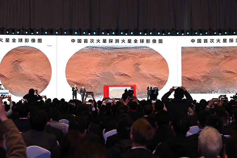 啟動(dòng)儀式上,國家航天局、中國科學(xué)院聯(lián)合發(fā)布中國首次火星探測火星全球影像圖;深空探測全國重點(diǎn)實(shí)驗室及中國科學(xué)技術(shù)大學(xué)“深空探測學(xué)院”正式掛牌;鵲橋通導技術(shù)試驗星正式命名為“天都一號”“天都二號”。