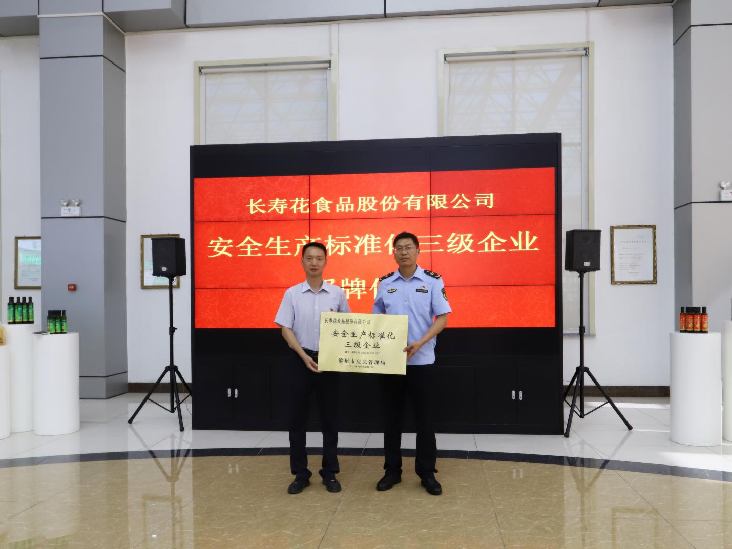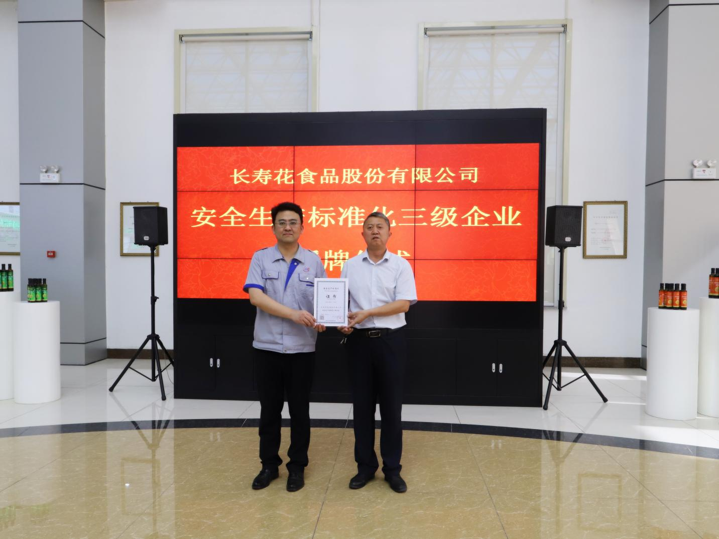 活動(dòng)舉辦期間,還舉行了安全生產(chǎn)生產(chǎn)標準化企業(yè)授牌儀式,為長(cháng)壽花食品公司頒發(fā)獎牌及證書(shū)。并到長(cháng)壽花全自動(dòng)灌裝包裝生產(chǎn)車(chē)間、特色黨建展廳等地進(jìn)行觀(guān)摩交流,詳細了解企業(yè)黨建引領(lǐng)、生產(chǎn)運營(yíng)及安全管理等重點(diǎn)工作開(kāi)展情況。