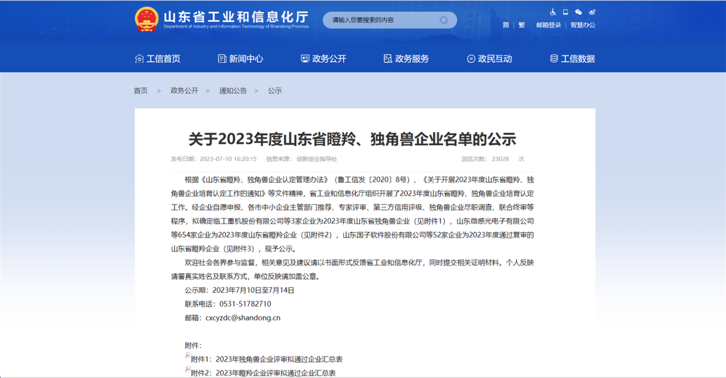據悉,根據《山東省瞪羚、獨角獸企業(yè)認定管理辦法》《關(guān)于開(kāi)展2023年度山東省瞪羚、獨角獸企業(yè)培育認定工作的通知》等文件精神,省工業(yè)和信息化廳組織開(kāi)展了2023年度山東省瞪羚、獨角獸企業(yè)培育認定工作。經(jīng)企業(yè)自愿申報、各市中小企業(yè)主管部門(mén)推薦、專(zhuān)家評審、第三方信用評級、聯(lián)合終審等程序,確定了2023年度山東省瞪羚、獨角獸企業(yè)名單。
