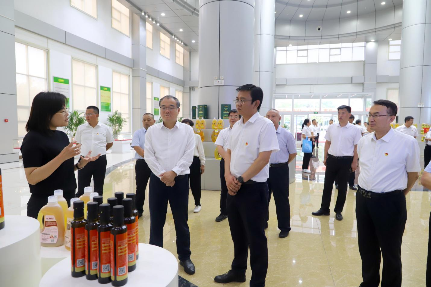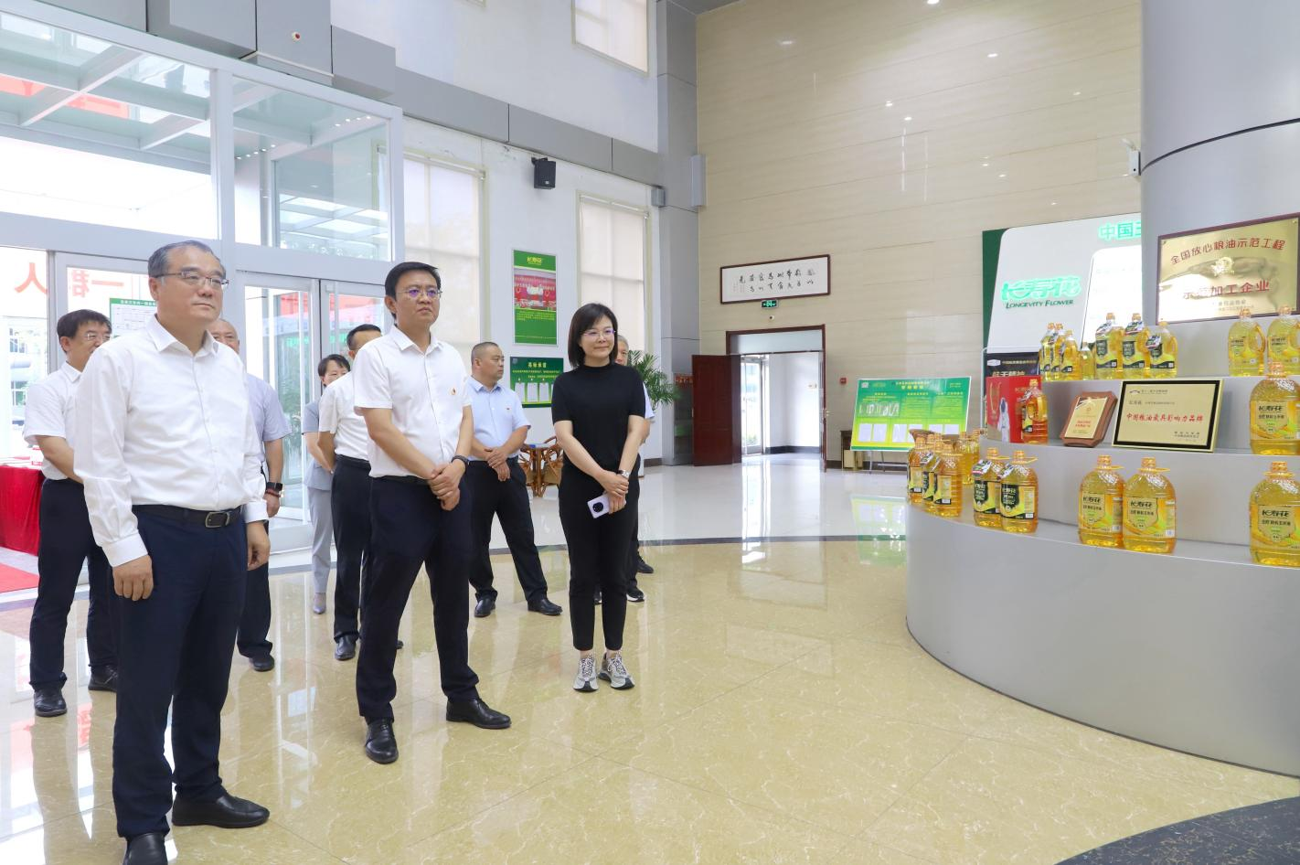 在長(cháng)壽花食品綠色生產(chǎn)基地,張程鵬一行實(shí)地參觀(guān)了長(cháng)壽花產(chǎn)品展廳和全自動(dòng)灌裝包裝生產(chǎn)車(chē)間,詳細了解了企業(yè)黨建引領(lǐng)、經(jīng)營(yíng)發(fā)展、生產(chǎn)工藝流程以及新產(chǎn)品研發(fā)等情況。
