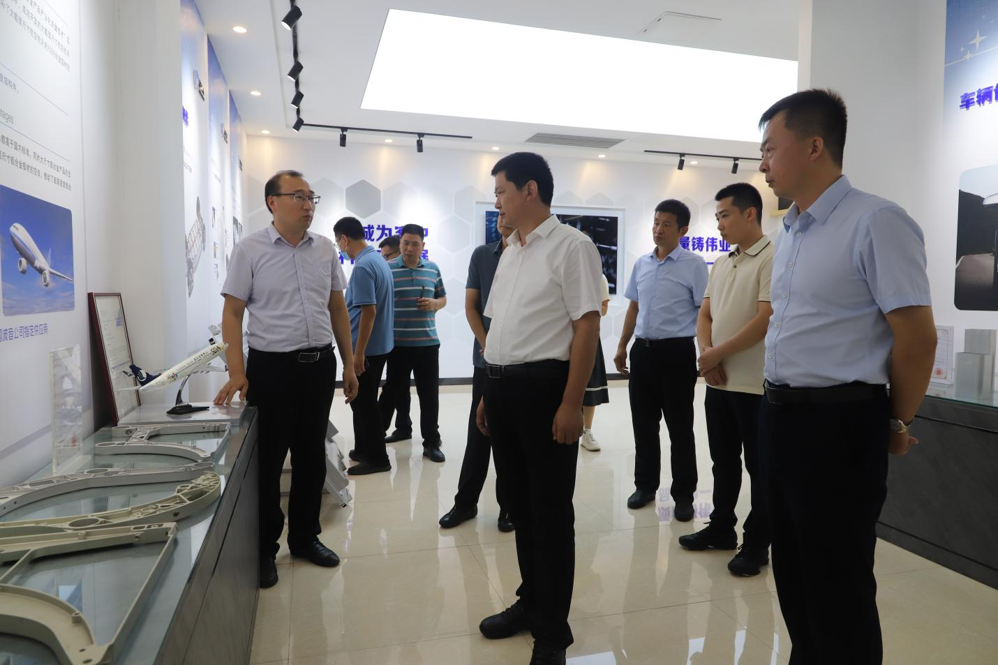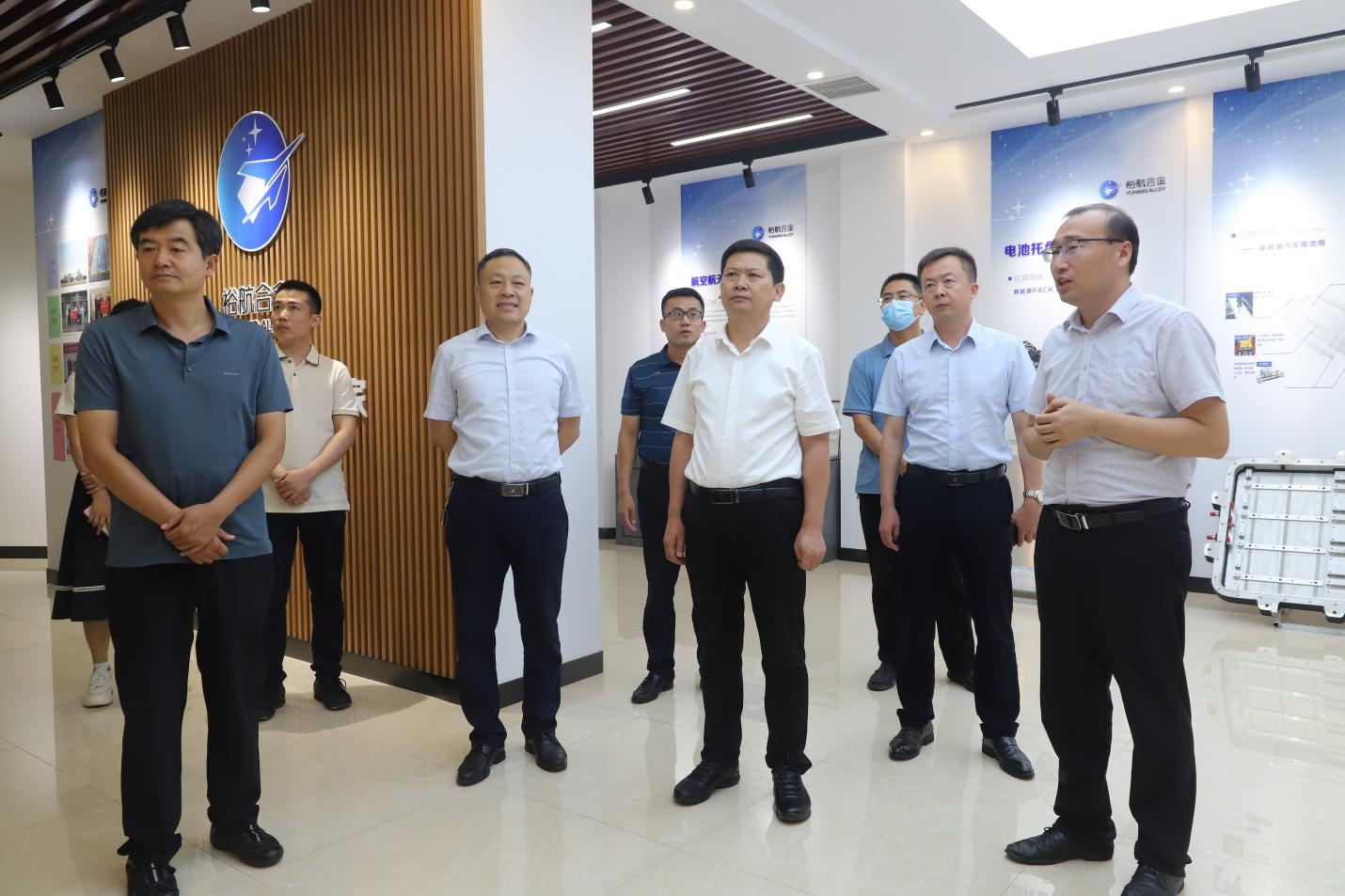 在裕航合金高端鋁精深加工生產(chǎn)基地,考察領(lǐng)導詳細了解企業(yè)生產(chǎn)經(jīng)營(yíng)、產(chǎn)業(yè)布局及科創(chuàng )轉化等方面情況,對公司強化創(chuàng )新驅動(dòng)、提升科創(chuàng )水平、實(shí)現產(chǎn)學(xué)研聯(lián)動(dòng)發(fā)展的做法和成效給予高度評價(jià)。