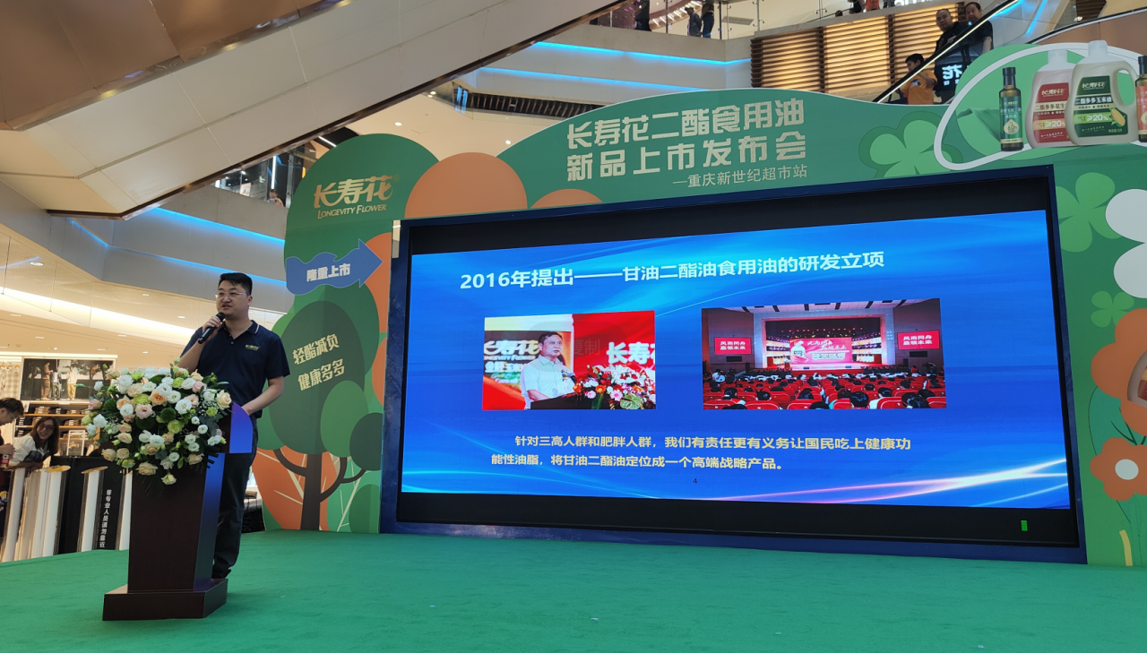最后,孫兆星從長(cháng)壽花甘油二酯油產(chǎn)品研發(fā)、上市、銷(xiāo)售策略等方面做了詳細介紹。