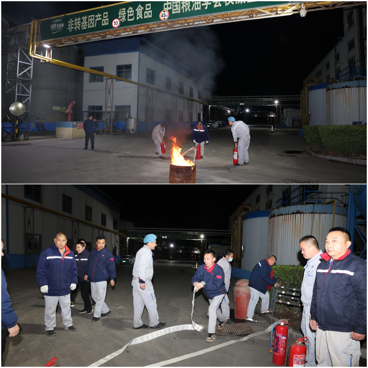 【模擬事件一】凌晨四點(diǎn),模擬長(cháng)壽花食品儲油罐區突發(fā)火情,車(chē)間人員發(fā)現后第一時(shí)間通知值班領(lǐng)導,并對現場(chǎng)進(jìn)行初步撲救,隨后應急管理科安全人員一分鐘之內到達現場(chǎng)指揮處置,組織車(chē)間生產(chǎn)人員進(jìn)行疏導撤離、控制火情。