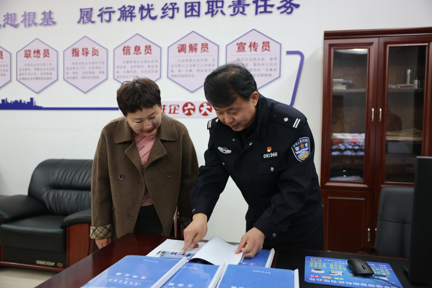 期間,趙建軍詳細介紹駐企警務(wù)全科服務(wù)站人員構成、服務(wù)內容及機制運轉情況,孫穎細致講述兩位高級警長(cháng)的駐企成果和工作成效。“依法有法辦 有法依法辦”“靠前一步 主動(dòng)作為”的駐企理念、“溫暖貼心 務(wù)實(shí)高效”的駐企成果、“警企攜手 發(fā)展共贏(yíng)”的共創(chuàng )氛圍得到人民公安報山東記者站采訪(fǎng)一部主任孫麗麗的高度贊賞。