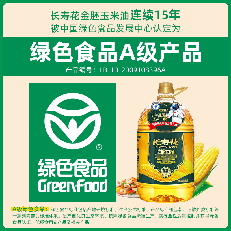 此外,作為此次參展的明星產(chǎn)品之一,在“航天精神,金胚品質(zhì)”“綠色食品”等身份加持下,長(cháng)壽花金胚玉米油也獲得了現場(chǎng)眾多消費者的青睞,其連續15年獲得國家綠色食品A級產(chǎn)品認證,且是玉米油行業(yè)唯一獲此殊榮的產(chǎn)品。