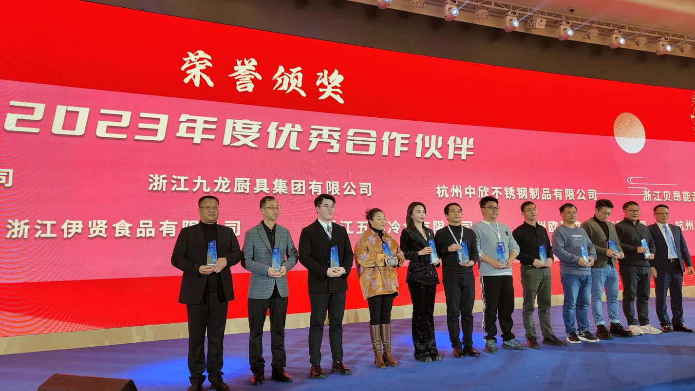 本次大會(huì ),長(cháng)壽花食品榮獲2023年度優(yōu)秀合作伙伴,長(cháng)壽花浙江大區總經(jīng)理楊春發(fā)代表企業(yè)上臺領(lǐng)獎。此外,大會(huì )還現場(chǎng)發(fā)布了2023年度浙江團餐企業(yè)TOP40強榜單、2023年度浙江團餐新銳企業(yè)榜單。