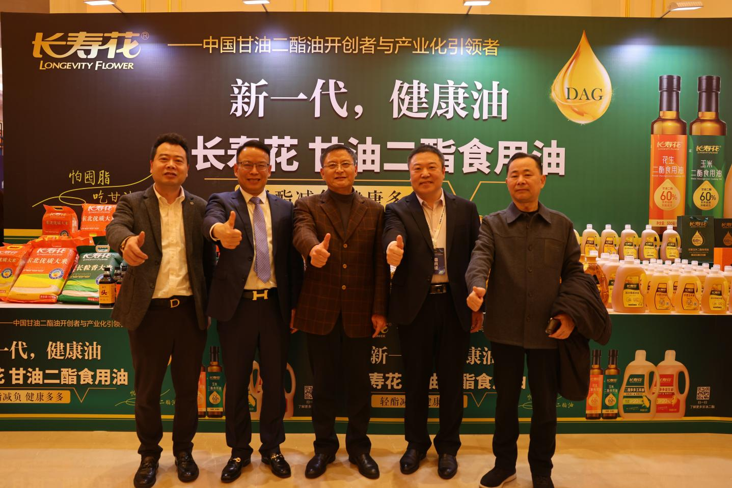 期間,浙江省餐飲行業(yè)協(xié)會(huì )會(huì )長(cháng)沈堅,浙江省團餐委理事長(cháng)余雄飛等領(lǐng)導蒞臨長(cháng)壽花展位巡展指導,長(cháng)壽花食品副總經(jīng)理、營(yíng)銷(xiāo)總監任在順重點(diǎn)介紹了產(chǎn)業(yè)科技創(chuàng )新,長(cháng)壽花甘油二酯油的技術(shù)攻堅、項目推進(jìn)、產(chǎn)業(yè)化運作及市場(chǎng)推廣應用等情況。巡展領(lǐng)導對長(cháng)壽花食品聚焦健康糧油、精研核心技術(shù)、創(chuàng )新升級新品,產(chǎn)業(yè)報國惠民的大思路、大布局給予了充分肯定和高度評價(jià)。