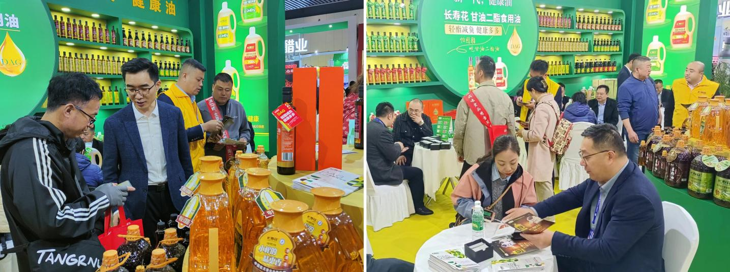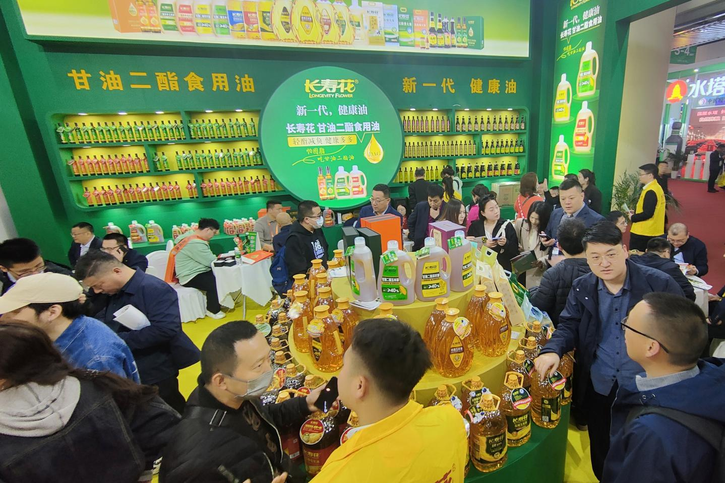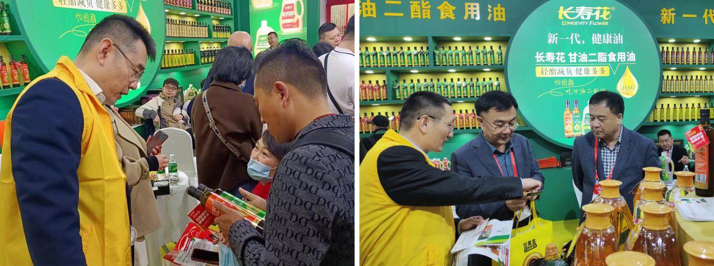 相約蓉城,花綻精彩。在長(cháng)壽花食品特色展區,全系產(chǎn)品展示、新品重磅亮相,加上全國區域市場(chǎng)主要負責人的現場(chǎng)互動(dòng)宣講,吸引了眾多與會(huì )人員參與互動(dòng),展位前滿(mǎn)滿(mǎn)都是前來(lái)咨詢(xún)的客商。值得關(guān)注的是,伴隨著(zhù)健康消費理念的升級,首次亮相糖酒會(huì )的長(cháng)壽花甘油二酯(DAG含量20%—80%)系列食用油,憑借其輕酯特質(zhì)和健康屬性,以及在業(yè)內的產(chǎn)業(yè)化引領(lǐng)作用,實(shí)力出圈,強勢吸粉,成為本屆展會(huì )最為閃耀的新品之一。