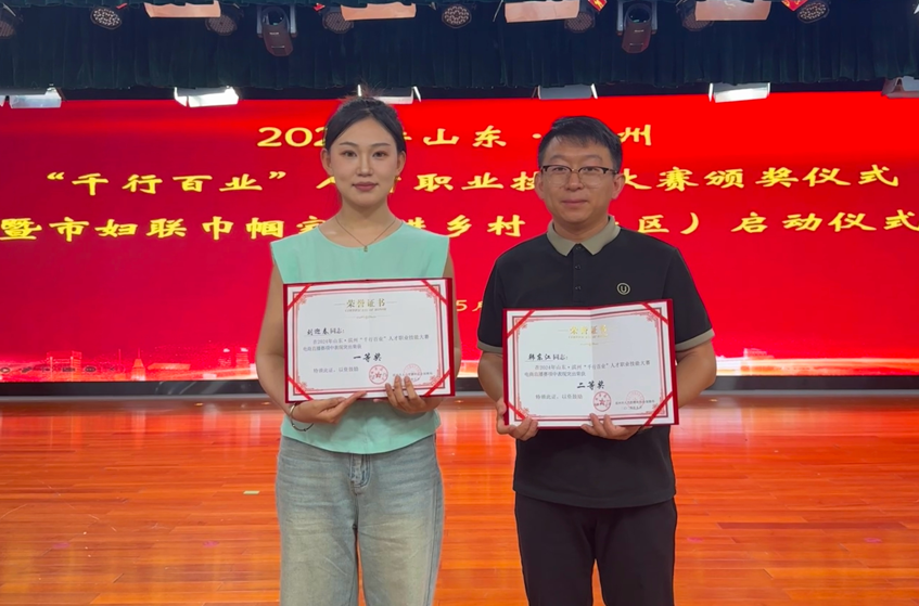 日前,2024年山東·濱州“千行百業(yè)”人才職業(yè)技能大賽頒獎儀式在濱州舉行。長(cháng)壽花電商運營(yíng)部主播劉迎春、韓東江作為企業(yè)代表參賽,在“電商直播”賽項中攬獲第一、二名,分別獲得大賽一等獎、二等獎的優(yōu)秀成績(jì)。