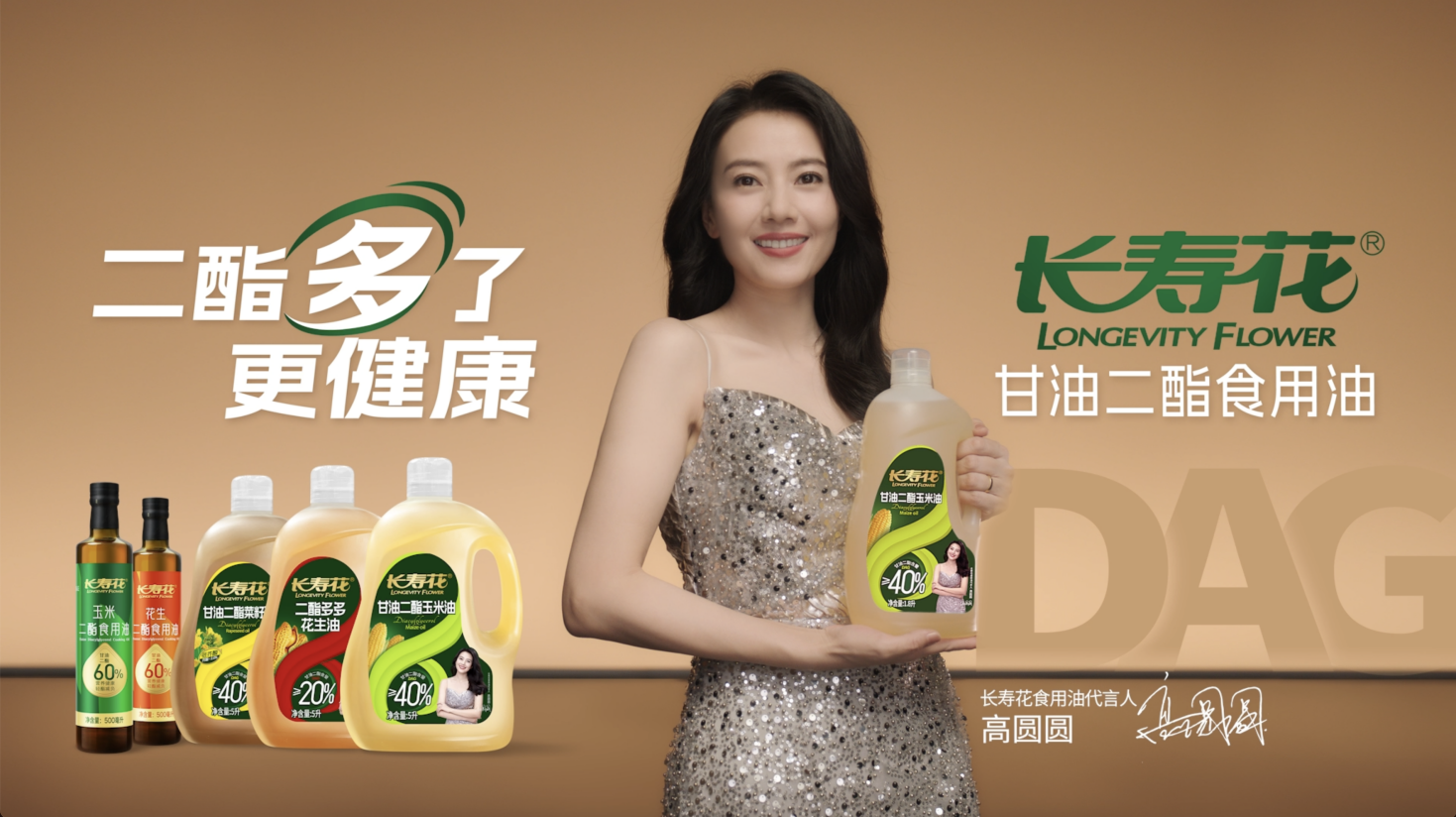 高圓圓塑造了眾多經(jīng)典角色,是溫婉知性、低調謙遜的國民女神,是璀璨的熒幕之星,更是追求自然、健康的生活典范。長(cháng)壽花始終堅守“為國家做好油、讓國民吃好油”的品牌初心,先后創(chuàng )新推出長(cháng)壽花金胚玉米油、高谷維稻米油、0反式脂肪高養玉米油、甘油二酯食用油(DAG)等高端健康產(chǎn)品,備受業(yè)界及消費者青睞。