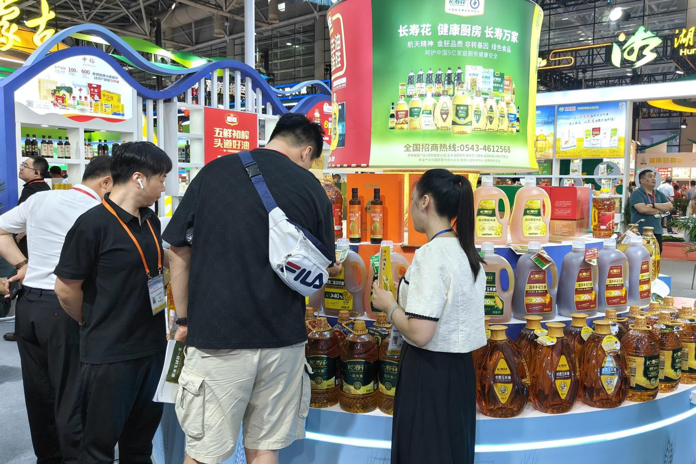本次展會(huì ),長(cháng)壽花攜帶二酯菜籽油、二酯多多玉米油、二酯多多花生油、高谷維稻米油等家庭健康廚房系列產(chǎn)品參展,專(zhuān)業(yè)銷(xiāo)售為客戶(hù)細心講解場(chǎng)景解決方案,迎來(lái)了全國各地專(zhuān)業(yè)人士及當地民眾駐足交流與咨詢(xún)。