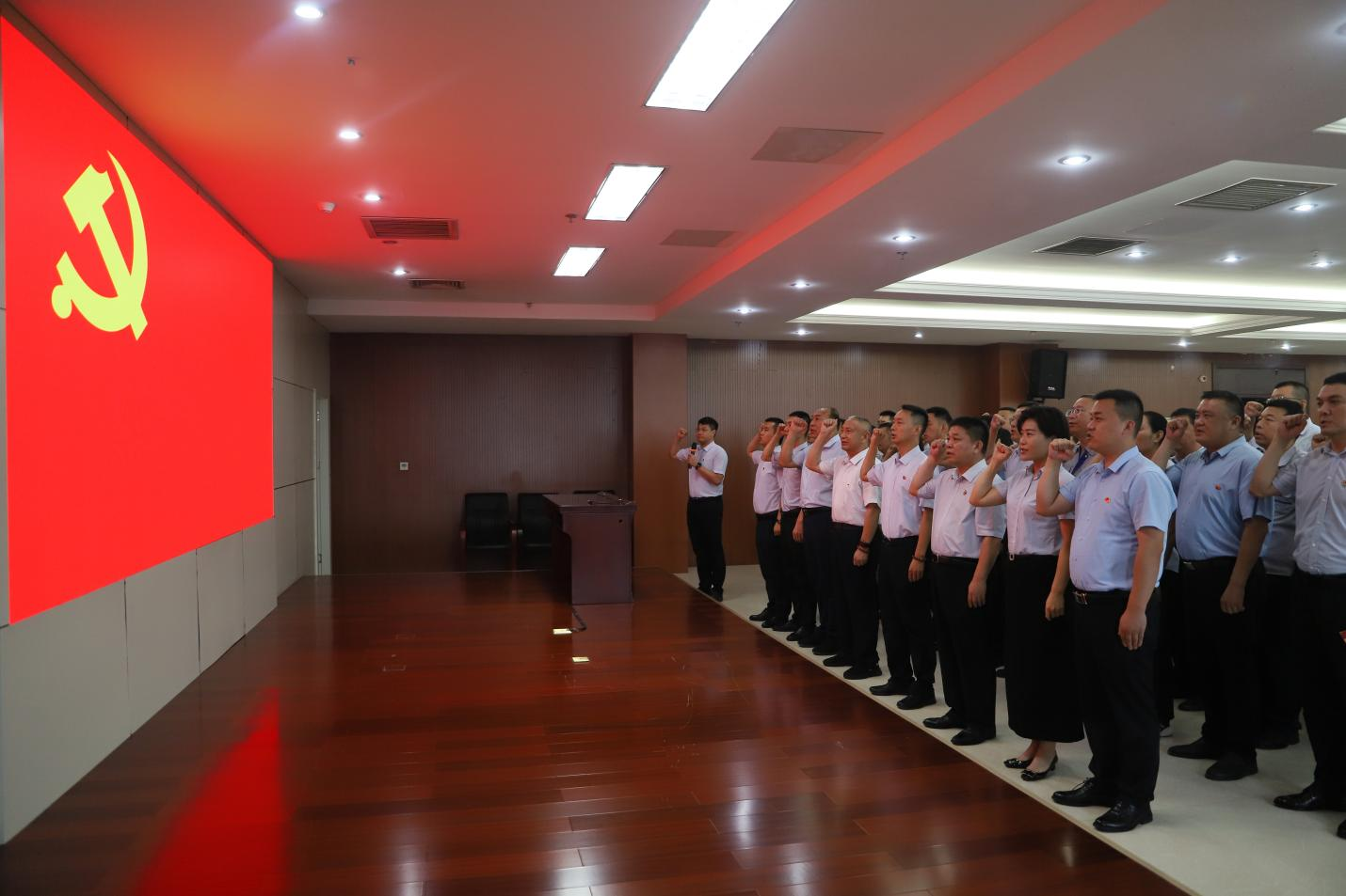 重溫入黨誓詞。培訓結束后,全體黨員舉行了重溫入黨誓詞儀式。面向黨旗,黨員們莊嚴宣誓,鏗鏘有力的誓言久久回蕩,彰顯了三星廣大黨員同志“錘煉黨性守初心 凝心聚力擔使命”的堅定決心。