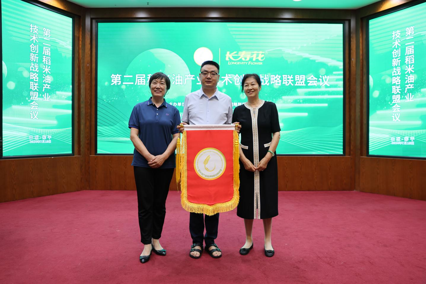 大會(huì )同時(shí)舉辦了第三屆稻米油產(chǎn)業(yè)技術(shù)創(chuàng )新戰略聯(lián)盟會(huì )議授旗儀式,張桂鳳及長(cháng)壽花食品、第三屆聯(lián)盟會(huì )議承辦單位代表完成旗幟轉交,從山東到湖北,從黃河之濱到長(cháng)江之畔,在場(chǎng)與會(huì )領(lǐng)導嘉賓共同見(jiàn)證了授旗使命的傳遞和接力。