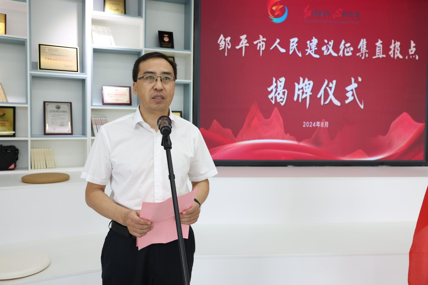 8月7日,鄒平市人民建議征集直報點(diǎn)揭牌儀式在山東三星集團文化中心舉行,鄒平市委社會(huì )工作部部長(cháng)、市委“兩新”工委書(shū)記宋明科,市委組織部副部長(cháng)張金平,韓店鎮黨委副書(shū)記、鎮長(cháng)劉慎鵬,鎮黨委副書(shū)記張先亮,山東三星集團黨總支書(shū)記王明峰及各鎮街代表參加活動(dòng)。