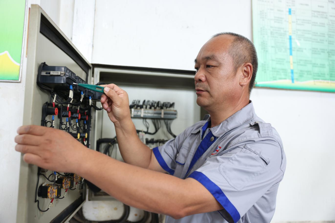 在長(cháng)壽花初加工廠(chǎng)區,有一個(gè)熟悉的身影經(jīng)常穿梭于各個(gè)車(chē)間檢修工段,他的身影,就像一盞明燈,照亮了廠(chǎng)區的每一個(gè)角落,以他的專(zhuān)業(yè)技能和敬業(yè)奉獻,為企業(yè)生產(chǎn)保駕護航。大家都親切地稱(chēng)呼他陳師傅,他就是動(dòng)力科員工陳明永,一位技藝高超的電工。