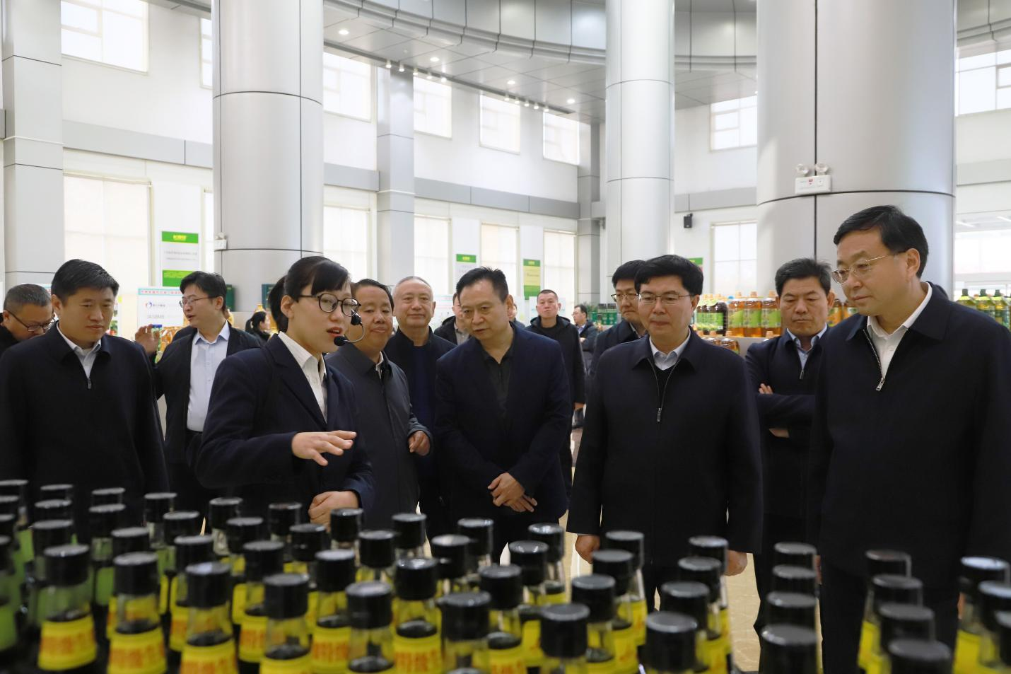 在長(cháng)壽花食品綠色生產(chǎn)基地,調研領(lǐng)導一行到長(cháng)壽花產(chǎn)品展廳及全自動(dòng)灌裝包裝生產(chǎn)車(chē)間進(jìn)行了實(shí)地參觀(guān),認真聽(tīng)取產(chǎn)業(yè)運營(yíng)、技術(shù)創(chuàng )新、市場(chǎng)開(kāi)拓及未來(lái)發(fā)展規劃等相關(guān)情況介紹,重點(diǎn)了解了企業(yè)在培育農業(yè)特色產(chǎn)業(yè),推動(dòng)農業(yè)產(chǎn)業(yè)全鏈條升級的創(chuàng )新成果和發(fā)展實(shí)效,并與企業(yè)負責人圍繞以新質(zhì)生產(chǎn)力引領(lǐng)農業(yè)產(chǎn)業(yè)高質(zhì)量發(fā)展議題進(jìn)行了深入探討。