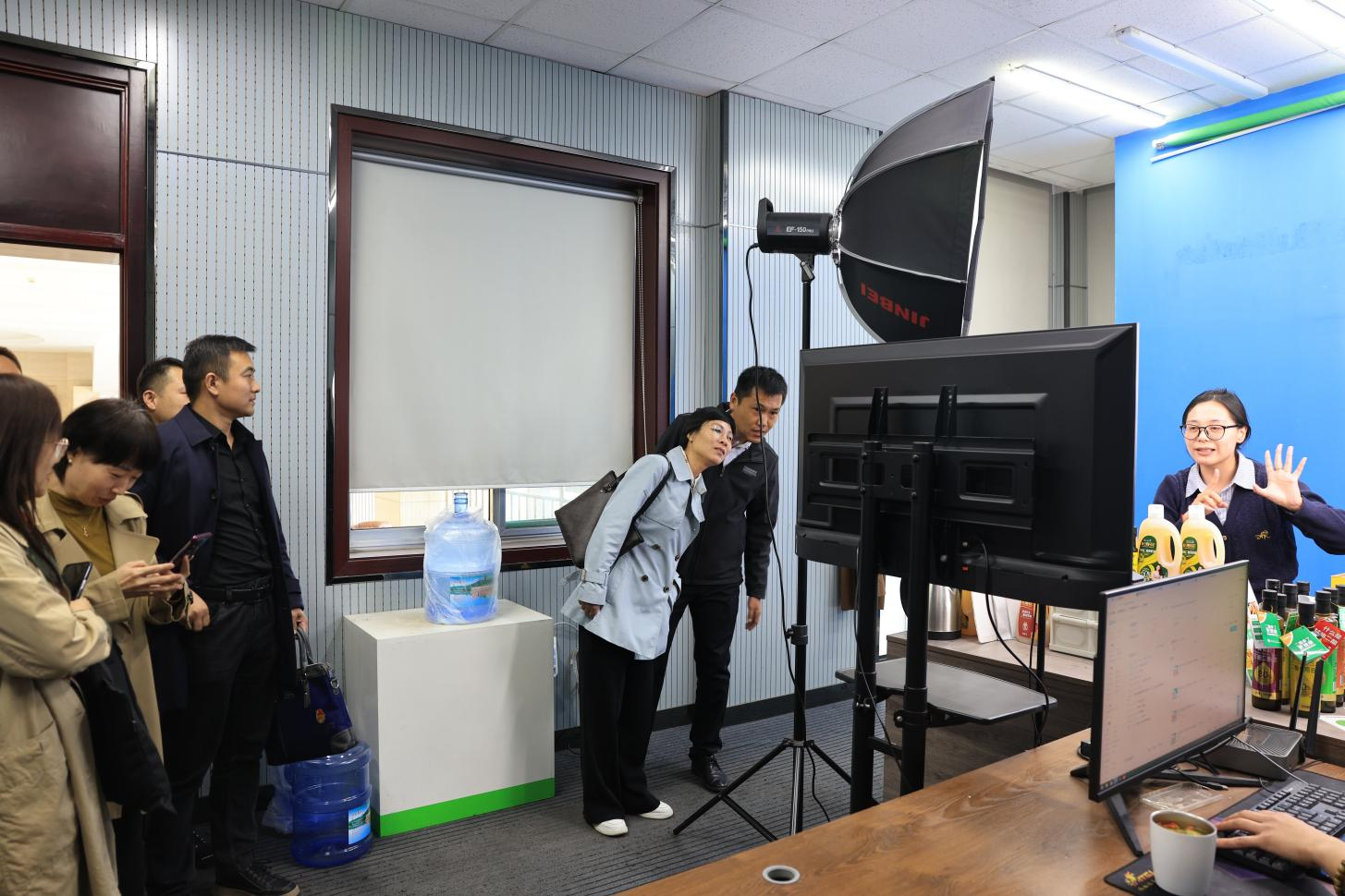 在長(cháng)壽花食品電商直播基地,調研領(lǐng)導實(shí)地了解了直播運營(yíng)模式、銷(xiāo)售數據統計、主播培訓等相關(guān)工作情況。
