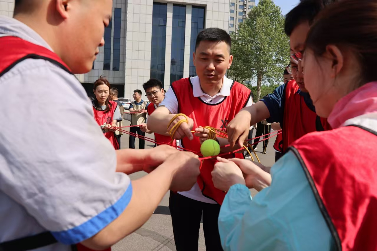 隊員們需緊緊拉住繩頭,通過(guò)精準控制繩子的移動(dòng),將網(wǎng)球從起點(diǎn)順利運送到終點(diǎn)。過(guò)程中,稍有不慎網(wǎng)球便會(huì )滾落,前功盡棄,考驗著(zhù)團隊的默契與協(xié)調能力。各隊伍全神貫注、密切配合,在一次次嘗試中摸索出最佳方法,最終成功完成挑戰,深刻體會(huì )到團隊協(xié)作的重要性。
