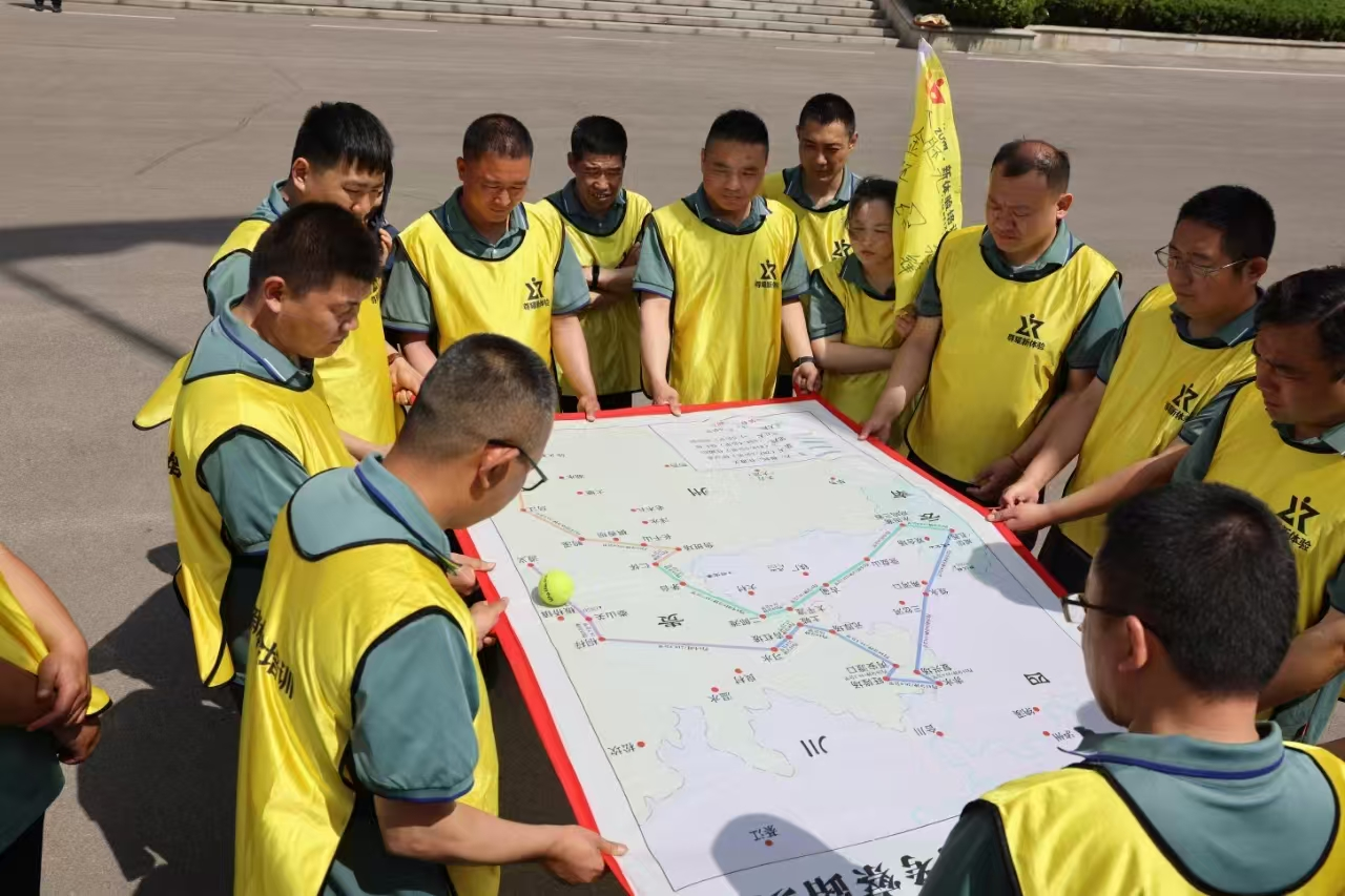 隊員們通過(guò)協(xié)作拉動(dòng)地圖,讓小球沿著(zhù)“長(cháng)征路線(xiàn)”滾動(dòng),在感受長(cháng)征精神的同時(shí),進(jìn)一步強化了團隊的溝通與配合,增強了團隊的凝聚力與使命感。