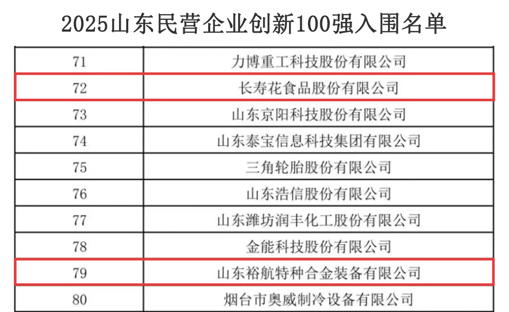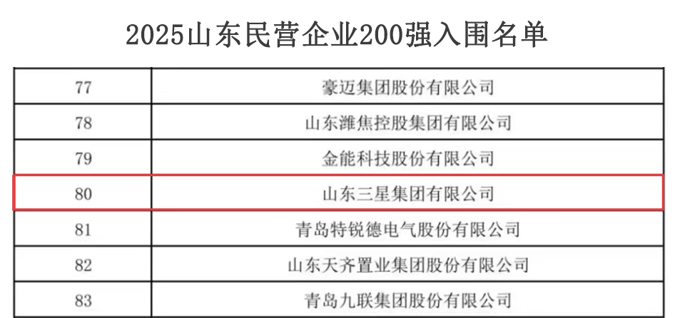 近日,山東省工商聯(lián)發(fā)布2025山東民營(yíng)企業(yè)百強系列榜單入圍名單,山東三星集團上榜山東民營(yíng)企業(yè)200強,位列第80位,較去年位次提升12位。集團旗下長(cháng)壽花食品、裕航合金公司同時(shí)上榜山東民營(yíng)企業(yè)創(chuàng )新100強,連續上榜民企百強榜單彰顯了企業(yè)在綜合實(shí)力、科創(chuàng )能力及發(fā)展潛力等方面的強勁韌性和勢頭。
