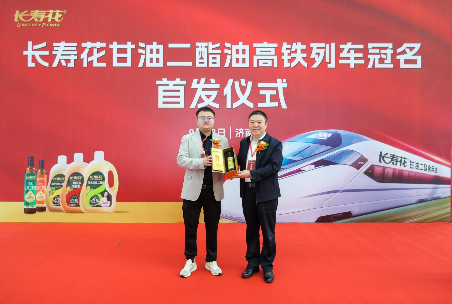 同時(shí),高鐵合作方向長(cháng)壽花食品贈送了特制的長(cháng)壽花冠名高鐵列車(chē)模型,寓意強強聯(lián)合,助力甘油二酯油新興品類(lèi)市場(chǎng)快速發(fā)展。